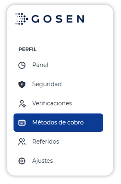 - Dirígete a «Mi perfil» → «Métodos de Cobro».