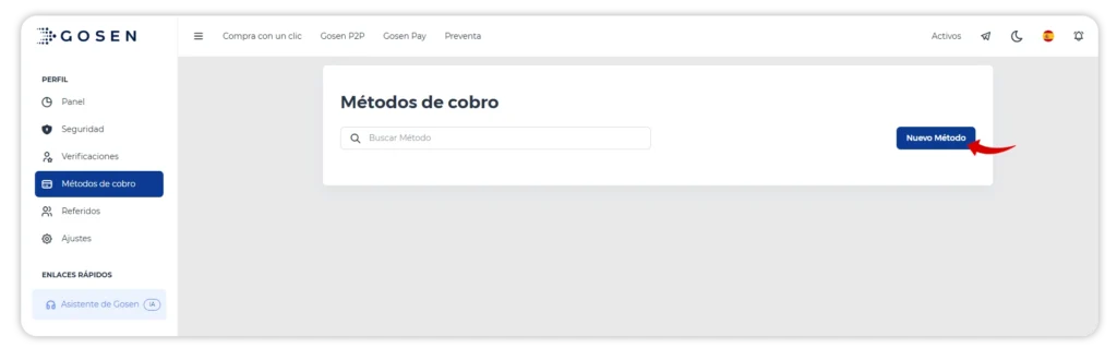 Para recibir pagos en Gosen, puedes agregar diferentes métodos de cobro y gestionarlos fácilmente. Sigue estos pasos: