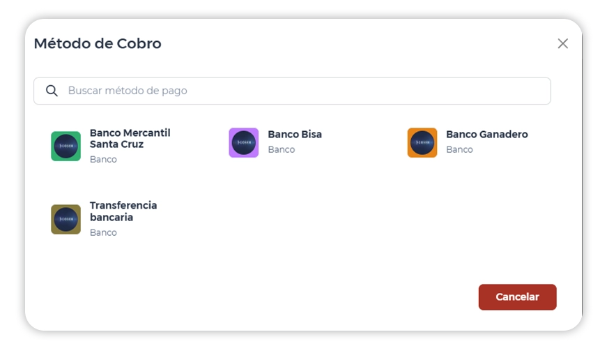 Una vez validado, el método aparecerá en tu lista de opciones de cobro.
