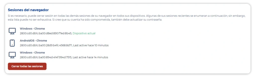 Si sospechas de un acceso no autorizado, cierra todas las sesiones y cambia tu contraseña.